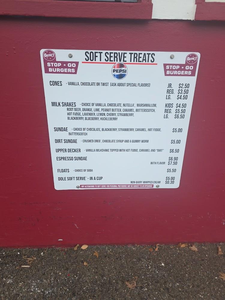 The menu at Gene’s Stop and Go reflects classic American fare, focusing on burgers and fried snacks. Options range from juicy hamburgers to unique variations like the Barnyard Burger, which includes different meat types.