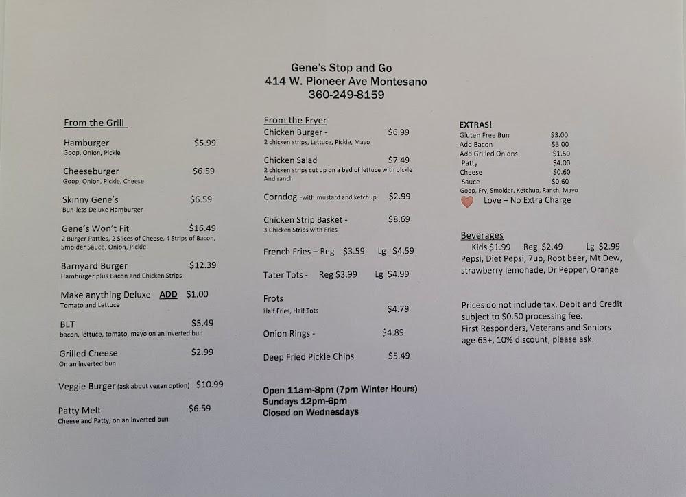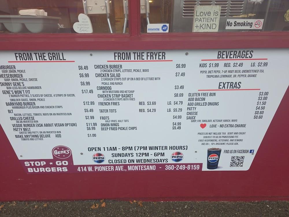 Welcome to Gene's Stop and Go, the sweetest little burger stand in the world! Nestled at 414 Pioneer Ave W in Montesano, WA, this charming eatery offers a delightful atmosphere with a menu full of mouthwatering burgers and tempting desserts. Perfect for a quick lunch or a cozy dinner, our fast service and approachable pricing (between $10-$20) make it a local favorite. Enjoy outdoor seating, takeout options, and dine-in experiences in a relaxed, historic setting. With accessible facilities and a kid-friendly menu, Gene's is ideal for families and tourists alike. Come savor the taste of tradition with us!